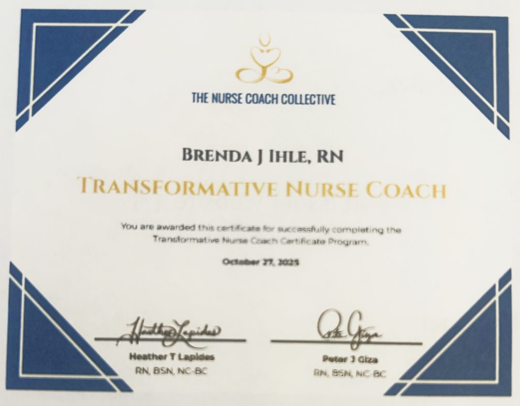 I am pleased to announce that I have now been certified as a Transformative Nurse Coach.